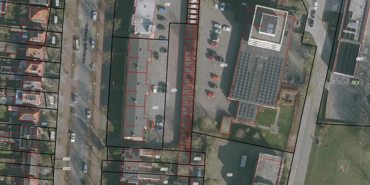 Het perceel waarop Verlengde Schrans 97-m staat heeft een oppervlakte van 1045 m². Dit is een zeer groot perceel. De perceeloppervlakte wordt geregistreerd door het Kadaster. Gedetailleerde informatie over de maten van dit perceel kunt u vinden in het rapport Kadastrale kaart met maatvoering van Verlengde Schrans 97-m.