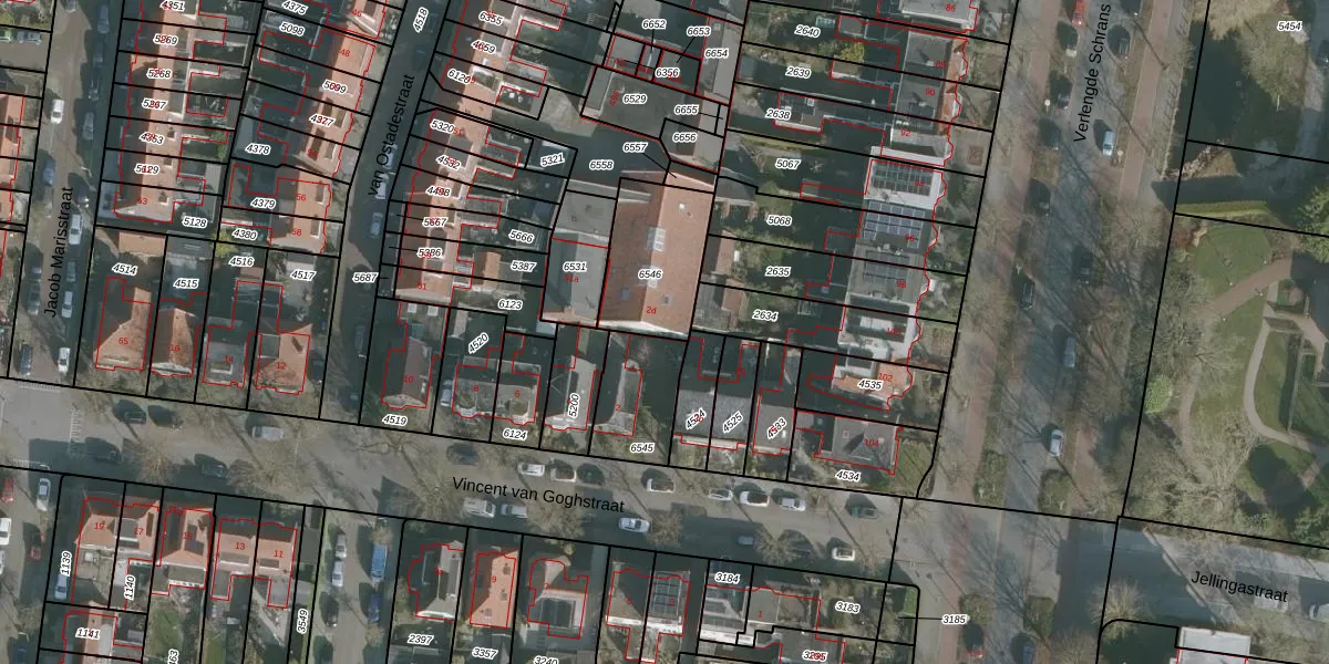 Het perceel waarop Vincent van Goghstraat 2-d staat heeft een oppervlakte van 327 m². Dit is een groot perceel. De perceeloppervlakte wordt geregistreerd door het Kadaster. Gedetailleerde informatie over de maten van dit perceel kunt u vinden in het rapport Kadastrale kaart met maatvoering van Vincent van Goghstraat 2-d.
