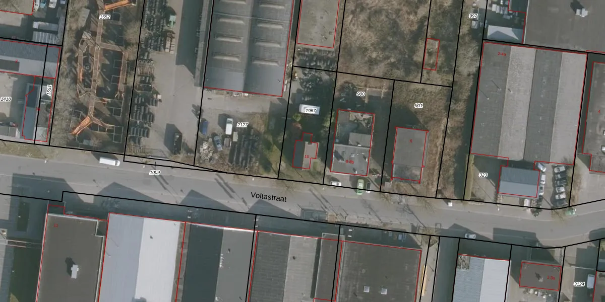 Het perceel waarop Voltastraat 10 staat heeft een oppervlakte van 550 m². Dit is een groot perceel. De perceeloppervlakte wordt geregistreerd door het Kadaster. Gedetailleerde informatie over de maten van dit perceel kunt u vinden in het rapport Kadastrale kaart met maatvoering van Voltastraat 10.