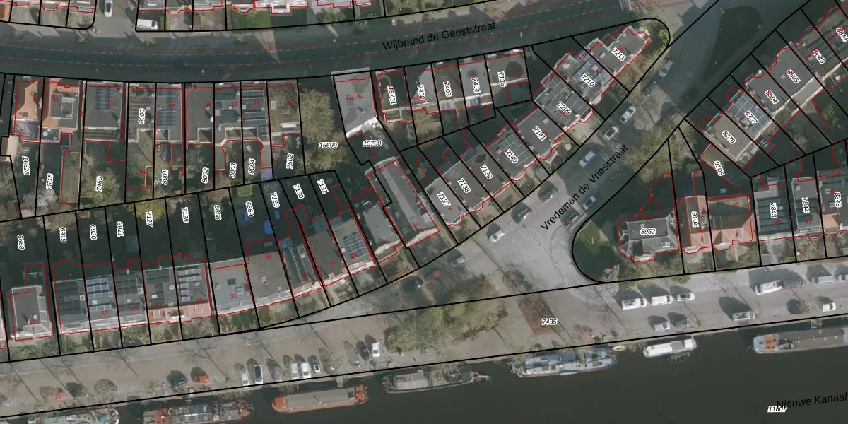 Het perceel waarop Vredeman de Vriesstraat 3 staat heeft een oppervlakte van 438 m². Dit is een groot perceel. De perceeloppervlakte wordt geregistreerd door het Kadaster. Gedetailleerde informatie over de maten van dit perceel kunt u vinden in het rapport Kadastrale kaart met maatvoering van Vredeman de Vriesstraat 3.
