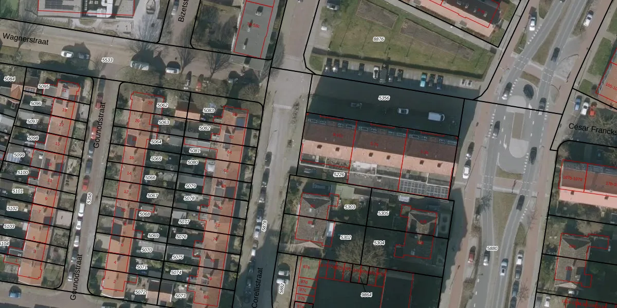 Het perceel waarop Wagnerstraat 11 staat heeft een oppervlakte van 1054 m². Dit is een zeer groot perceel. De perceeloppervlakte wordt geregistreerd door het Kadaster. Gedetailleerde informatie over de maten van dit perceel kunt u vinden in het rapport Kadastrale kaart met maatvoering van Wagnerstraat 11.
