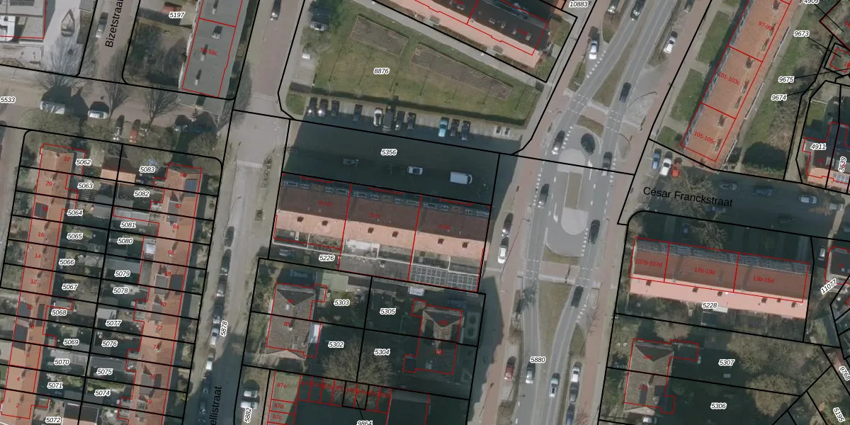 Het adres ligt op het perceel LWD00-D-5226, dat zich in de kadastrale gemeente Leeuwarden bevindt. Het perceel is 1054 m² groot. Dat is kleiner dan de gemiddelde perceeloppervlakte in Leeuwarden, dat op 1523,41 m² ligt. Het kleinste perceel in de kadastrale gemeente is 0 m² groot. De grootste perceeloppervlakte is 1,54 km². Op het perceel liggen in totaal 18 adressen. In de Basisregistratie Kadaster (BRK) werden de grenzen van het perceel geregistreerd op 15-01-1998.