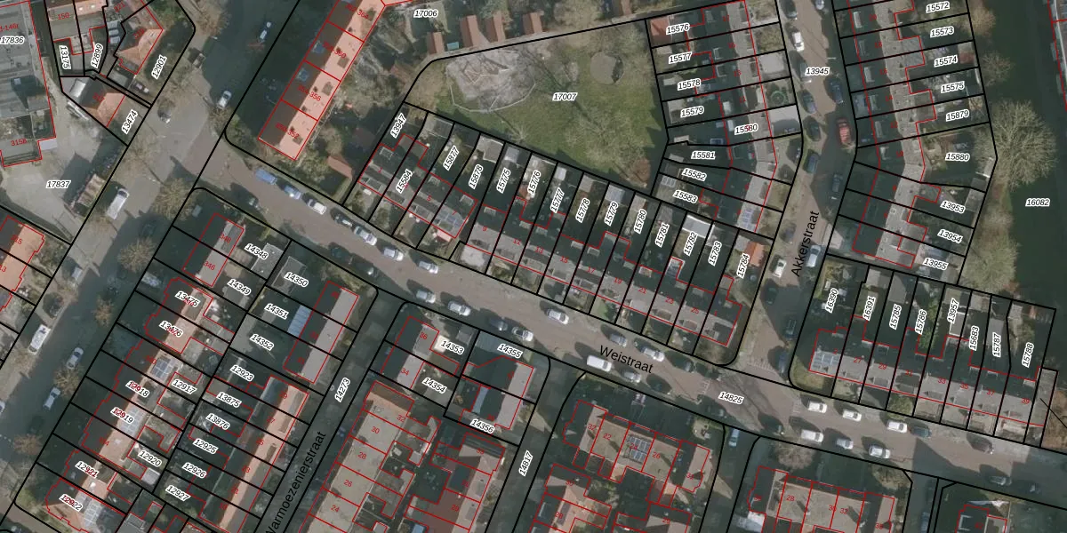 Weistraat 13 is gelegen op kadastraal perceel LWD00G15777. Deze kadastrale aanduiding is uniek en wordt gebruikt door het Kadaster om eigendomsrechten en andere zakelijke rechten vast te leggen. Het perceel maakt onderdeel uit van de kadastrale gemeente Leeuwarden.