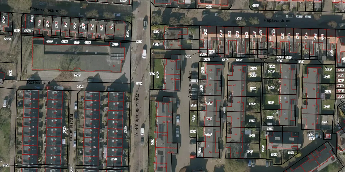 Het perceel waarop Werkmanslust 56 staat heeft een oppervlakte van 297 m². Dit is een middelgroot perceel. De perceeloppervlakte wordt geregistreerd door het Kadaster. Gedetailleerde informatie over de maten van dit perceel kunt u vinden in het rapport Kadastrale kaart met maatvoering van Werkmanslust 56.