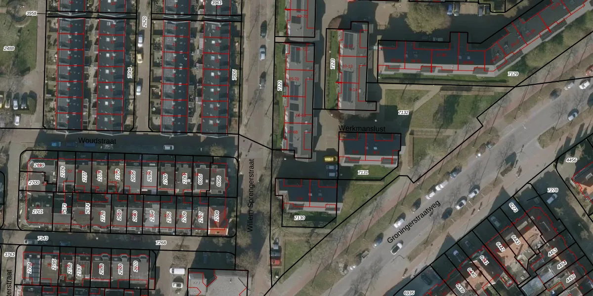 Het perceel waarop Werkmanslust 68 staat heeft een oppervlakte van 500 m². Dit is een groot perceel. De perceeloppervlakte wordt geregistreerd door het Kadaster. Gedetailleerde informatie over de maten van dit perceel kunt u vinden in het rapport Kadastrale kaart met maatvoering van Werkmanslust 68.
