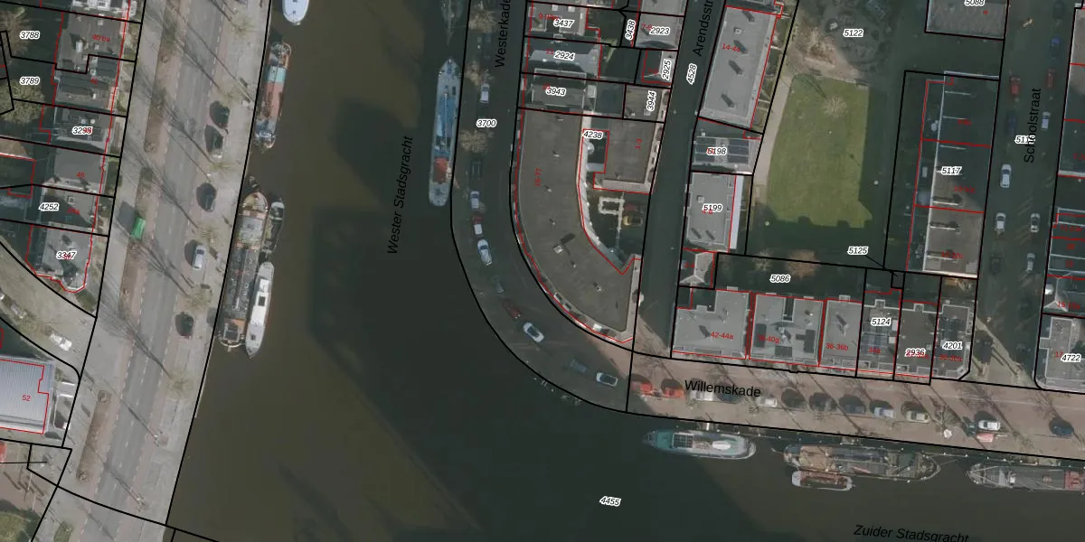 Het perceel waarop Westerkade 39 staat heeft een oppervlakte van 933 m². Dit is een groot perceel. De perceeloppervlakte wordt geregistreerd door het Kadaster. Gedetailleerde informatie over de maten van dit perceel kunt u vinden in het rapport Kadastrale kaart met maatvoering van Westerkade 39.