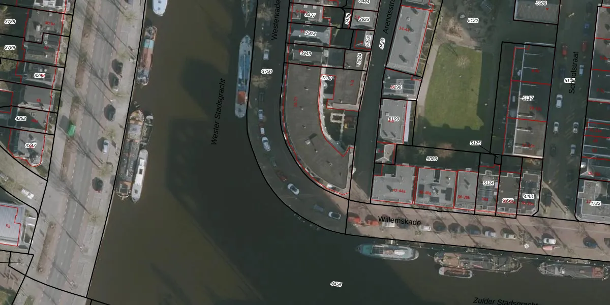 Het perceel waarop Westerkade 47 staat heeft een oppervlakte van 933 m². Dit is een groot perceel. De perceeloppervlakte wordt geregistreerd door het Kadaster. Gedetailleerde informatie over de maten van dit perceel kunt u vinden in het rapport Kadastrale kaart met maatvoering van Westerkade 47.