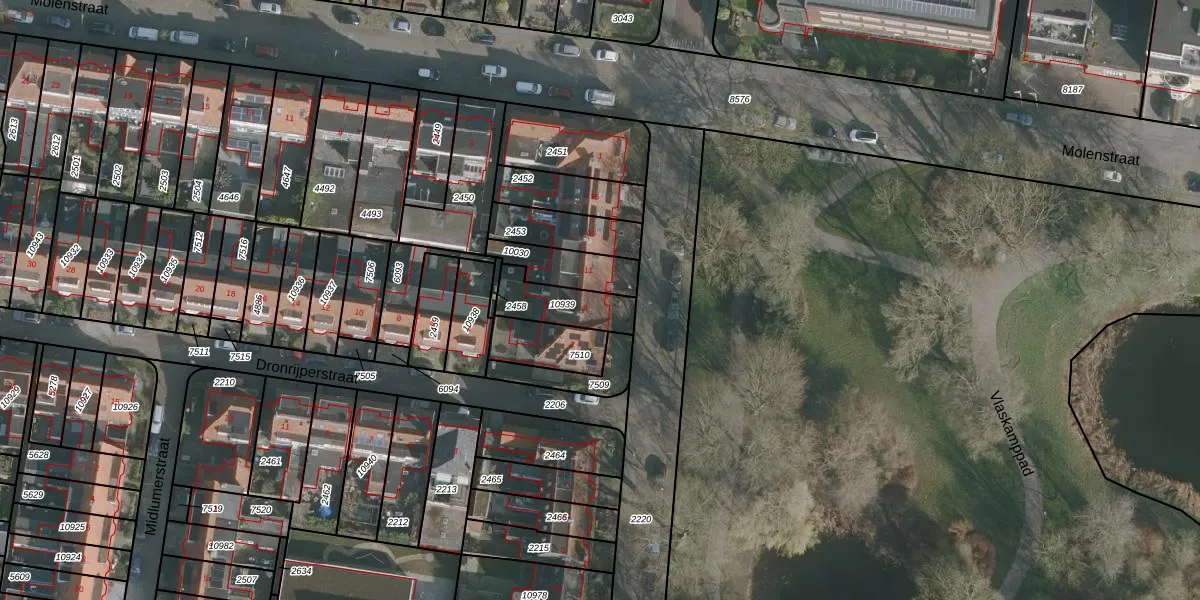 Gebruik de zoekbalk of klik op een perceel voor informatie over de adressen binnen dit perceel.