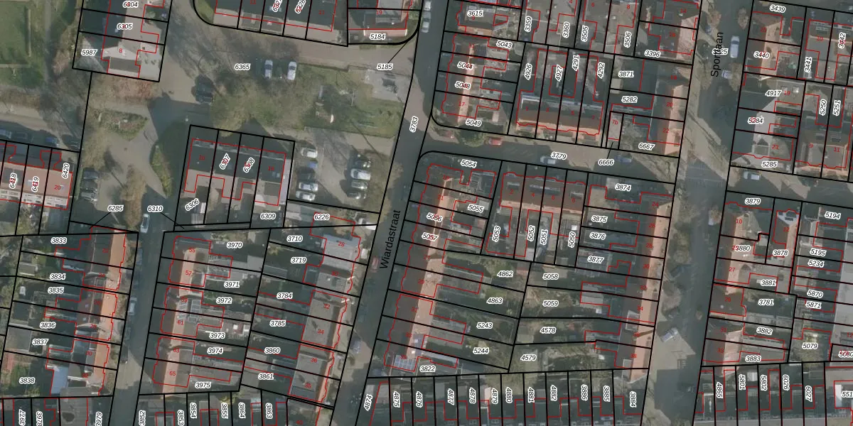 Het perceel waarop Wiardastraat 23 staat heeft een oppervlakte van 89 m². Dit is een klein perceel. De perceeloppervlakte wordt geregistreerd door het Kadaster. Gedetailleerde informatie over de maten van dit perceel kunt u vinden in het rapport Kadastrale kaart met maatvoering van Wiardastraat 23.
