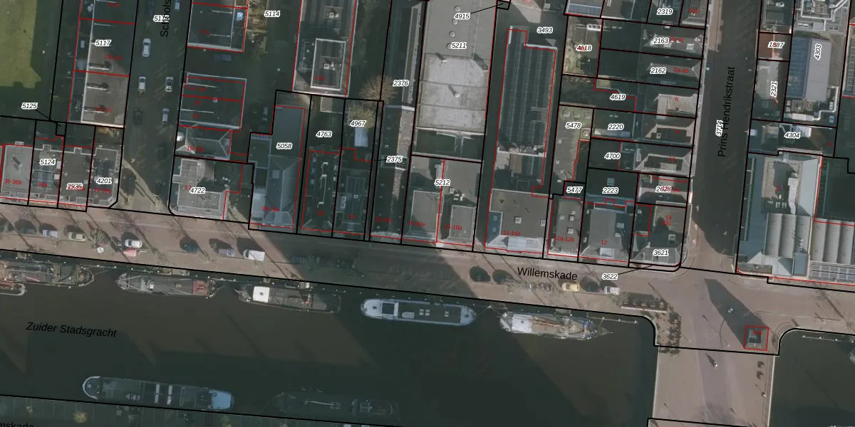 Het perceel waarop Willemskade 20-d staat heeft een oppervlakte van 350 m². Dit is een groot perceel. De perceeloppervlakte wordt geregistreerd door het Kadaster. Gedetailleerde informatie over de maten van dit perceel kunt u vinden in het rapport Kadastrale kaart met maatvoering van Willemskade 20-d.