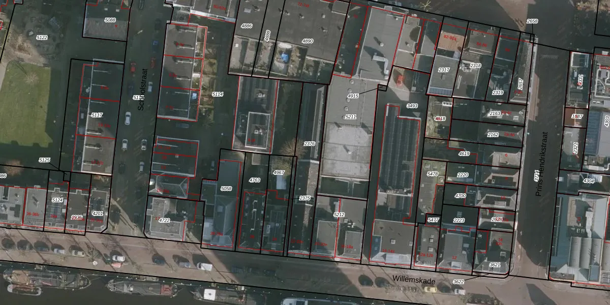 Het perceel waarop Willemskade 22-h staat heeft een oppervlakte van 448 m². Dit is een groot perceel. De perceeloppervlakte wordt geregistreerd door het Kadaster. Gedetailleerde informatie over de maten van dit perceel kunt u vinden in het rapport Kadastrale kaart met maatvoering van Willemskade 22-h.