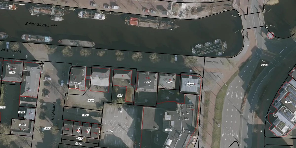 Willemskade 3 is gelegen op kadastraal perceel LWD00G18049. Deze kadastrale aanduiding is uniek en wordt gebruikt door het Kadaster om eigendomsrechten en andere zakelijke rechten vast te leggen. Het perceel maakt onderdeel uit van de kadastrale gemeente Leeuwarden.