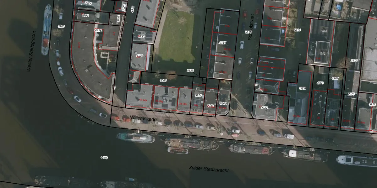 Het perceel waarop Willemskade 36-a staat heeft een oppervlakte van 650 m². Dit is een groot perceel. De perceeloppervlakte wordt geregistreerd door het Kadaster. Gedetailleerde informatie over de maten van dit perceel kunt u vinden in het rapport Kadastrale kaart met maatvoering van Willemskade 36-a.