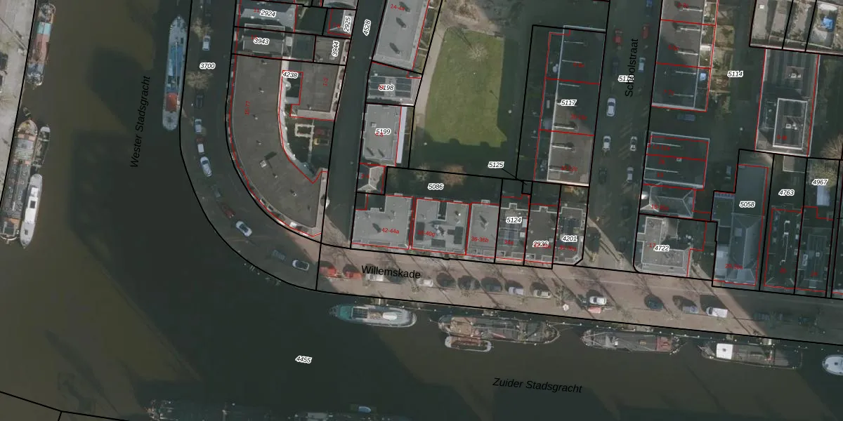 Het perceel waarop Willemskade 38 staat heeft een oppervlakte van 650 m². Dit is een groot perceel. De perceeloppervlakte wordt geregistreerd door het Kadaster. Gedetailleerde informatie over de maten van dit perceel kunt u vinden in het rapport Kadastrale kaart met maatvoering van Willemskade 38.