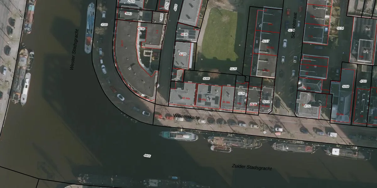 Het perceel waarop Willemskade 44 staat heeft een oppervlakte van 650 m². Dit is een groot perceel. De perceeloppervlakte wordt geregistreerd door het Kadaster. Gedetailleerde informatie over de maten van dit perceel kunt u vinden in het rapport Kadastrale kaart met maatvoering van Willemskade 44.