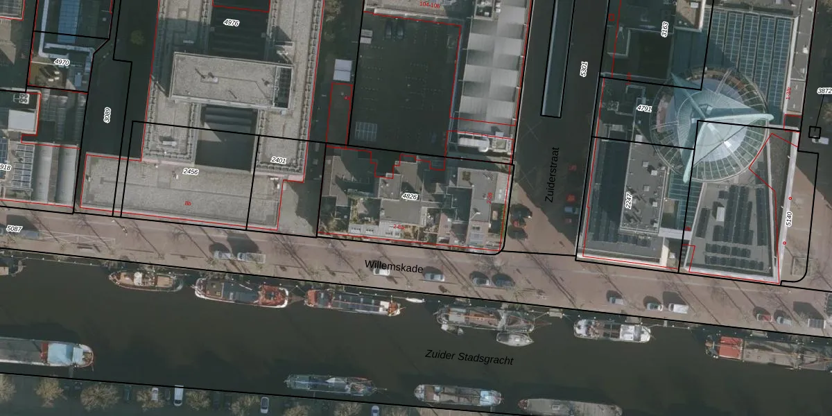 Het perceel waarop Willemskade 6-c staat heeft een oppervlakte van 1023 m². Dit is een zeer groot perceel. De perceeloppervlakte wordt geregistreerd door het Kadaster. Gedetailleerde informatie over de maten van dit perceel kunt u vinden in het rapport Kadastrale kaart met maatvoering van Willemskade 6-c.