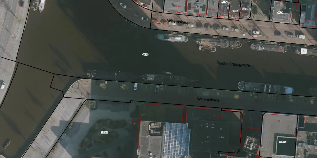 Het perceel waarop Willemskade 79 staat heeft een oppervlakte van 4,0 ha. Dit is een zeer groot perceel. De perceeloppervlakte wordt geregistreerd door het Kadaster. Gedetailleerde informatie over de maten van dit perceel kunt u vinden in het rapport Kadastrale kaart met maatvoering van Willemskade 79.