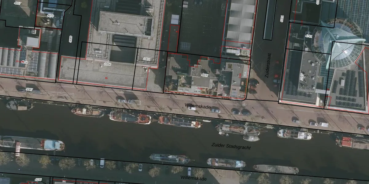Het perceel waarop Willemskade 8 staat heeft een oppervlakte van 1023 m². Dit is een zeer groot perceel. De perceeloppervlakte wordt geregistreerd door het Kadaster. Gedetailleerde informatie over de maten van dit perceel kunt u vinden in het rapport Kadastrale kaart met maatvoering van Willemskade 8.