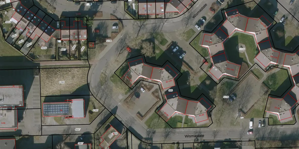 Wismastate 114 is gelegen op kadastraal perceel LWD00K966. Deze kadastrale aanduiding is uniek en wordt gebruikt door het Kadaster om eigendomsrechten en andere zakelijke rechten vast te leggen. Het perceel maakt onderdeel uit van de kadastrale gemeente Leeuwarden.
