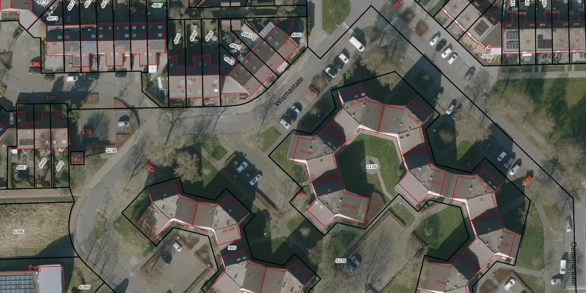 Wismastate 150 is gelegen op kadastraal perceel LWD00K1116. Deze kadastrale aanduiding is uniek en wordt gebruikt door het Kadaster om eigendomsrechten en andere zakelijke rechten vast te leggen. Het perceel maakt onderdeel uit van de kadastrale gemeente Leeuwarden.