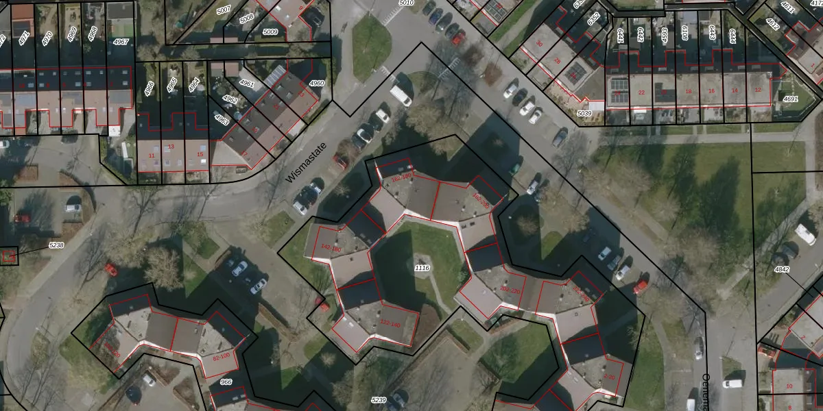 Wismastate 174 is gelegen op kadastraal perceel LWD00K1116. Deze kadastrale aanduiding is uniek en wordt gebruikt door het Kadaster om eigendomsrechten en andere zakelijke rechten vast te leggen. Het perceel maakt onderdeel uit van de kadastrale gemeente Leeuwarden.