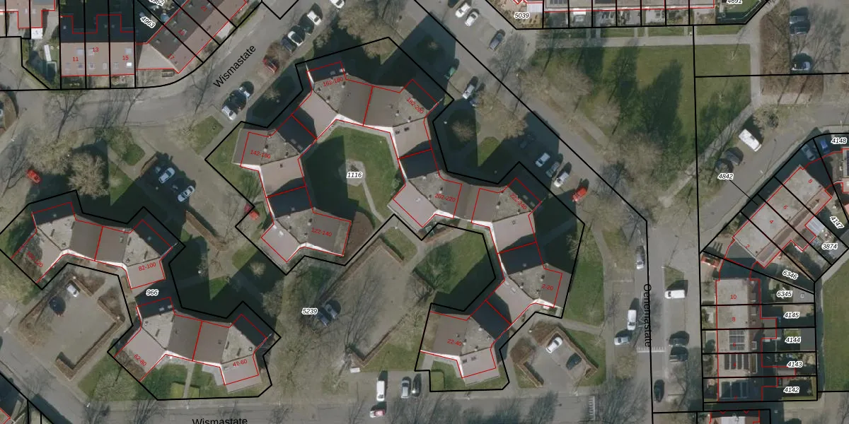 Het perceel waarop Wismastate 220 staat heeft een oppervlakte van 3164 m². Dit is een zeer groot perceel. De perceeloppervlakte wordt geregistreerd door het Kadaster. Gedetailleerde informatie over de maten van dit perceel kunt u vinden in het rapport Kadastrale kaart met maatvoering van Wismastate 220.