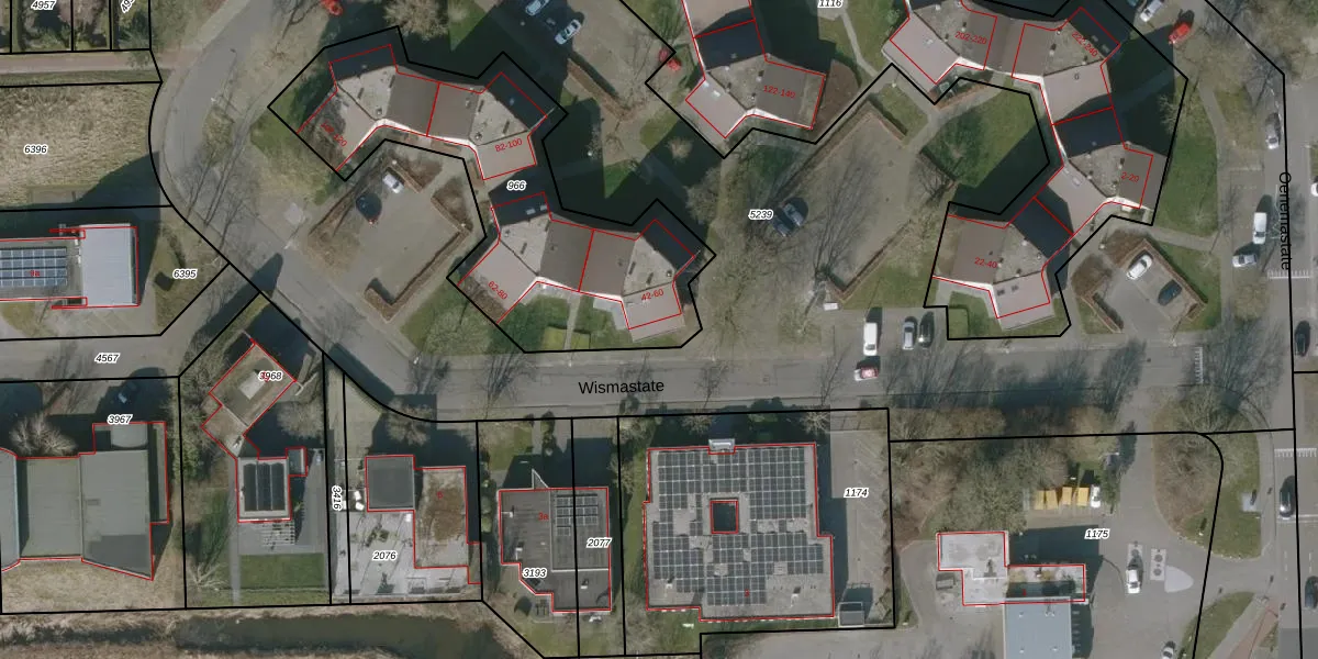 Het perceel waarop Wismastate 60 staat heeft een oppervlakte van 1373 m². Dit is een zeer groot perceel. De perceeloppervlakte wordt geregistreerd door het Kadaster. Gedetailleerde informatie over de maten van dit perceel kunt u vinden in het rapport Kadastrale kaart met maatvoering van Wismastate 60.