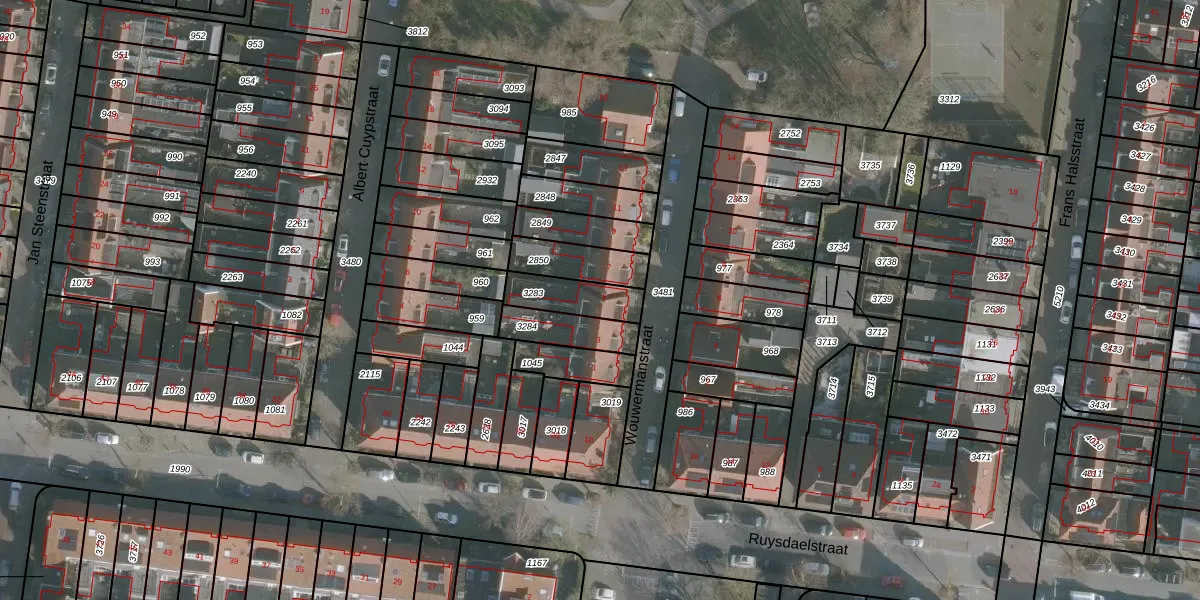 Het perceel waarop Wouwermanstraat 5 staat heeft een oppervlakte van 134 m². Dit is een middelgroot perceel. De perceeloppervlakte wordt geregistreerd door het Kadaster. Gedetailleerde informatie over de maten van dit perceel kunt u vinden in het rapport Kadastrale kaart met maatvoering van Wouwermanstraat 5.