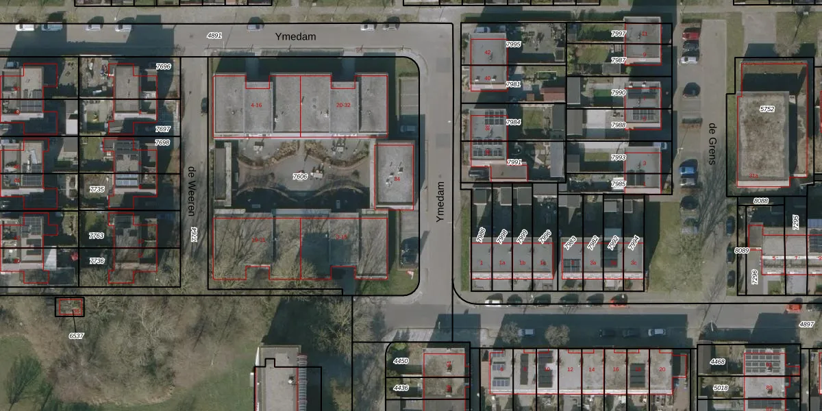 Het perceel waarop Ymedam 34 staat heeft een oppervlakte van 2930 m². Dit is een zeer groot perceel. De perceeloppervlakte wordt geregistreerd door het Kadaster. Gedetailleerde informatie over de maten van dit perceel kunt u vinden in het rapport Kadastrale kaart met maatvoering van Ymedam 34.