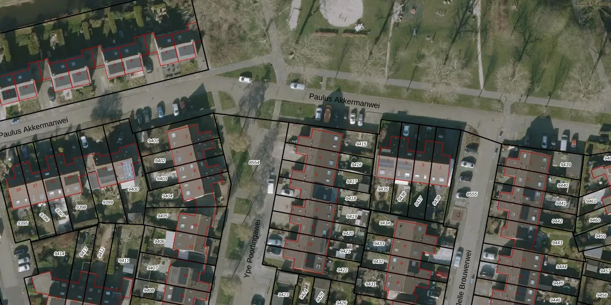 Gebruik de zoekbalk of klik op een perceel voor informatie over de adressen binnen dit perceel.