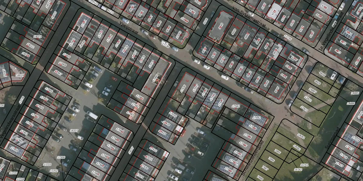Gebruik de zoekbalk of klik op een perceel voor informatie over de adressen binnen dit perceel.