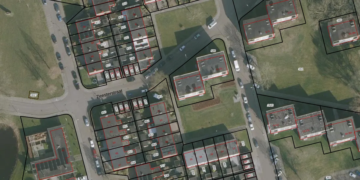 Zeesterstraat 15-b is gelegen op kadastraal perceel HZM00E588. Deze kadastrale aanduiding is uniek en wordt gebruikt door het Kadaster om eigendomsrechten en andere zakelijke rechten vast te leggen. Het perceel maakt onderdeel uit van de kadastrale gemeente Huizum.