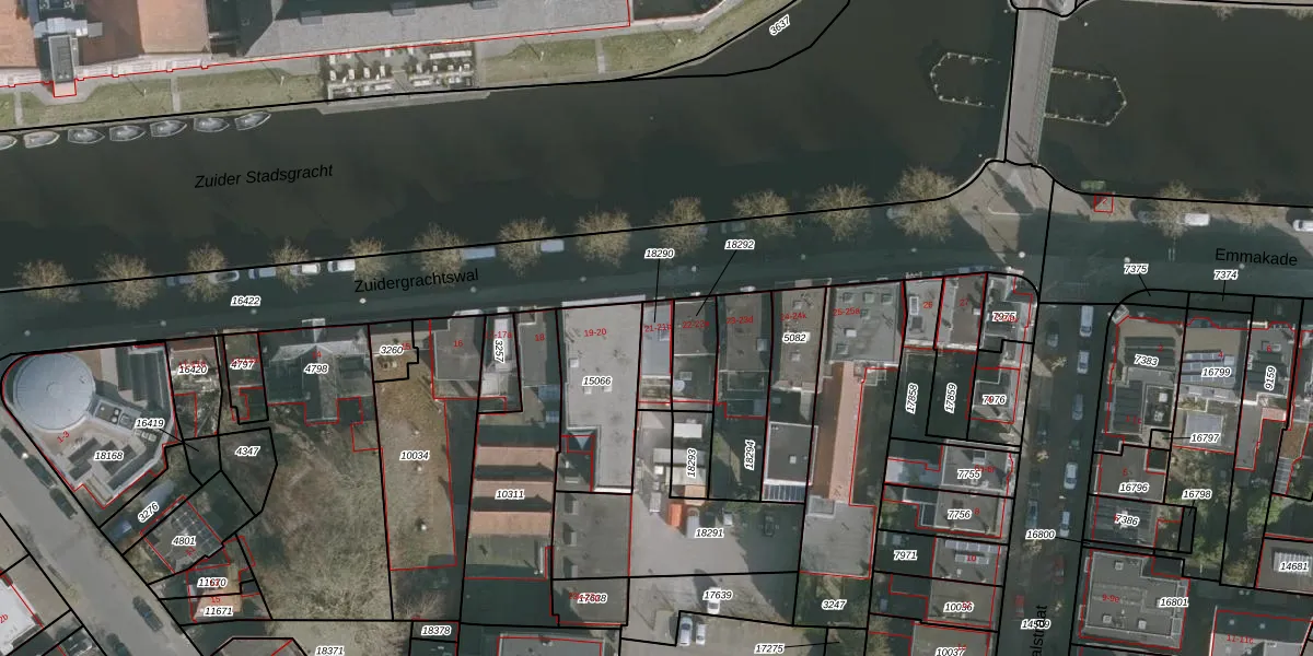 Zuidergrachtswal 21 is gelegen op kadastraal perceel LWD00G18290. Deze kadastrale aanduiding is uniek en wordt gebruikt door het Kadaster om eigendomsrechten en andere zakelijke rechten vast te leggen. Het perceel maakt onderdeel uit van de kadastrale gemeente Leeuwarden.