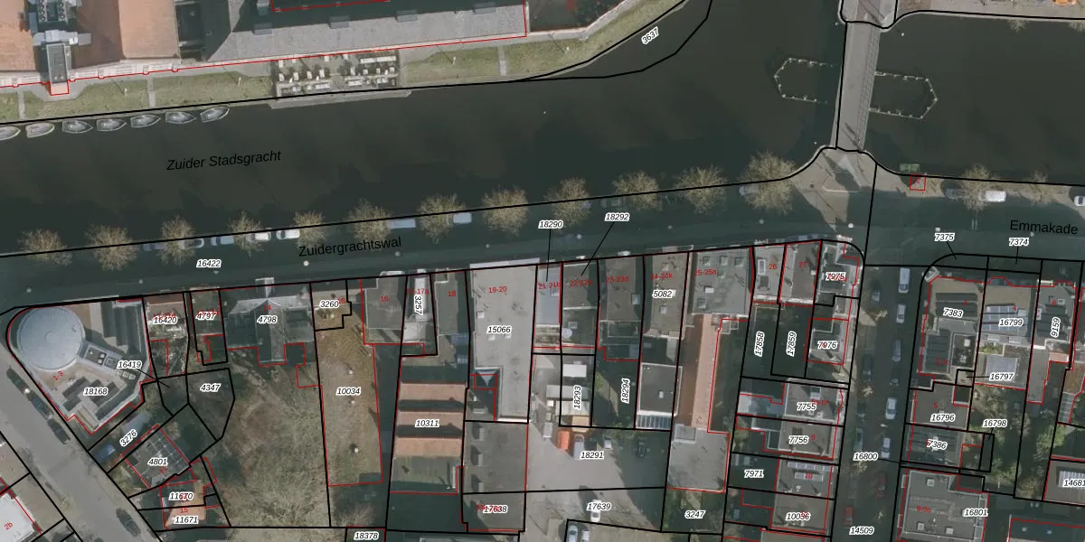 Zuidergrachtswal 21-b is gelegen op kadastraal perceel LWD00G18290. Deze kadastrale aanduiding is uniek en wordt gebruikt door het Kadaster om eigendomsrechten en andere zakelijke rechten vast te leggen. Het perceel maakt onderdeel uit van de kadastrale gemeente Leeuwarden.