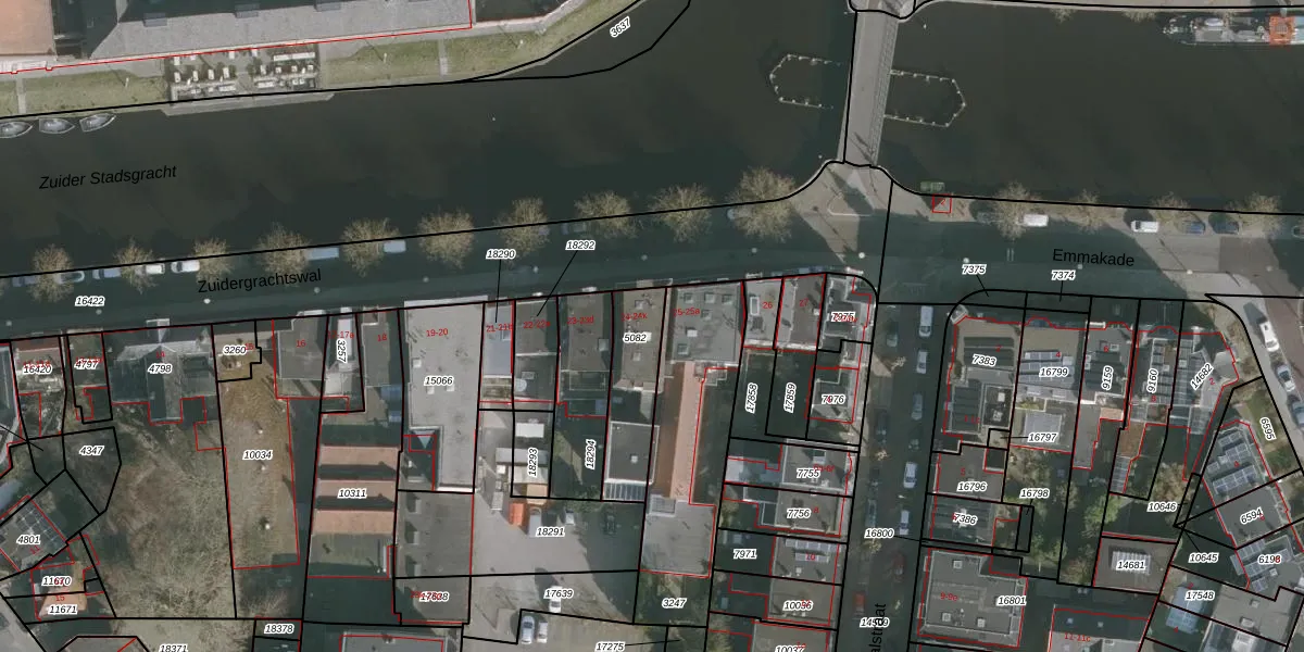 Het perceel waarop Zuidergrachtswal 24-a staat heeft een oppervlakte van 243 m². Dit is een middelgroot perceel. De perceeloppervlakte wordt geregistreerd door het Kadaster. Gedetailleerde informatie over de maten van dit perceel kunt u vinden in het rapport Kadastrale kaart met maatvoering van Zuidergrachtswal 24-a.