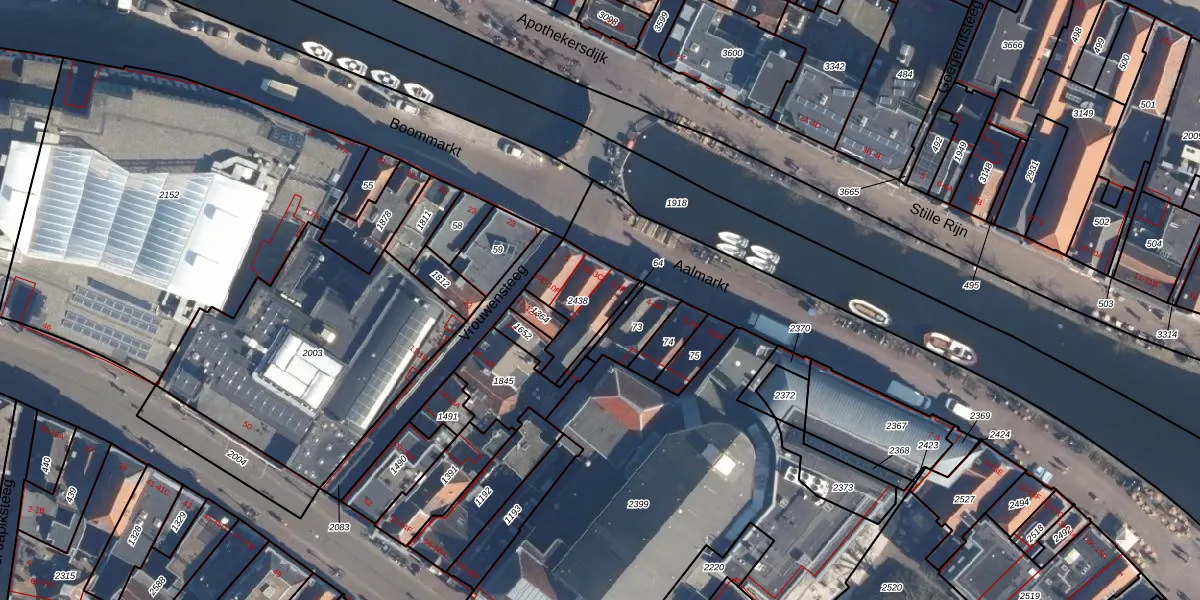 Het perceel waarop Aalmarkt 3-E staat heeft een oppervlakte van 209 m². Dit is een middelgroot perceel. De perceeloppervlakte wordt geregistreerd door het Kadaster. Gedetailleerde informatie over de maten van dit perceel kunt u vinden in het rapport Kadastrale kaart met maatvoering van Aalmarkt 3-E.