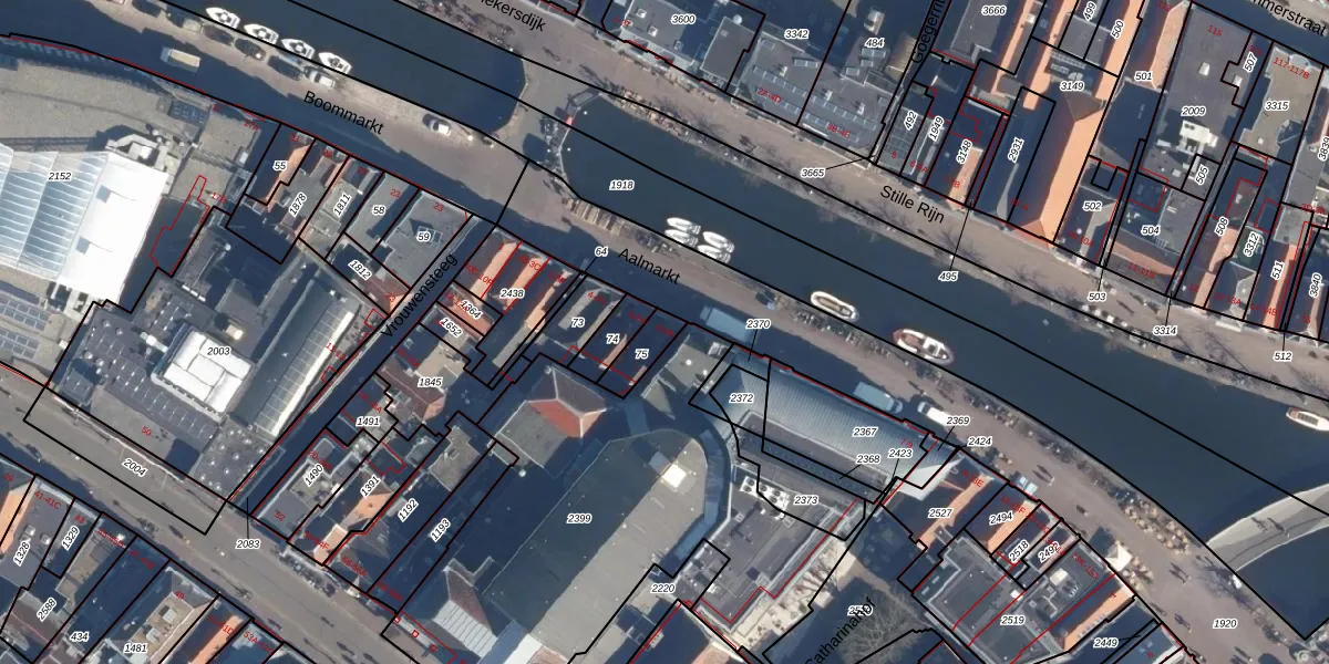 Het perceel waarop Aalmarkt 6-A staat heeft een oppervlakte van 72 m². Dit is een klein perceel. De perceeloppervlakte wordt geregistreerd door het Kadaster. Gedetailleerde informatie over de maten van dit perceel kunt u vinden in het rapport Kadastrale kaart met maatvoering van Aalmarkt 6-A.