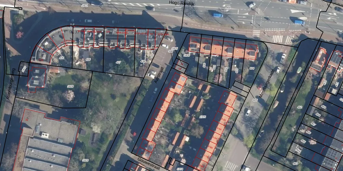 Het adres is gelegen op perceel 1775 in de sectie Q en de kadastrale gemeente Leiden. De kadastrale aanduiding is aldus LDN01-Q-1775. De oppervlakte van het perceel is 2465 m². Dat is groter dan gemiddeld in Leiden, waar de gemiddelde perceeloppervlakte op 704,99 m² ligt. Het grootste perceel in de kadastrale gemeente is 51,8 ha. Het kleinste perceel heeft een oppervlakte van 0 m². Op het perceel liggen in totaal 24 adressen. In de Basisregistratie Kadaster (BRK) werden de grenzen van het perceel geregistreerd op 04-09-2014.