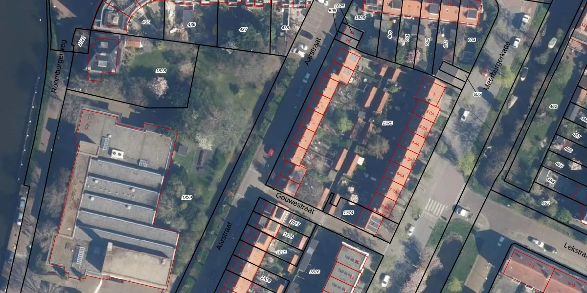 Het adres is gelegen op perceel 1775 in de sectie Q en de kadastrale gemeente Leiden. De kadastrale aanduiding is aldus LDN01-Q-1775. De oppervlakte van het perceel is 2465 m². Dat is groter dan gemiddeld in Leiden, waar de gemiddelde perceeloppervlakte op 704,97 m² ligt. Het grootste perceel in de kadastrale gemeente is 51,8 ha. Het kleinste perceel heeft een oppervlakte van 0 m². Er zijn 24 adressen aanwezig op het perceel. De laatste wijziging in het de Basisregistratie Kadaster (BRK) was op 04-09-2014.