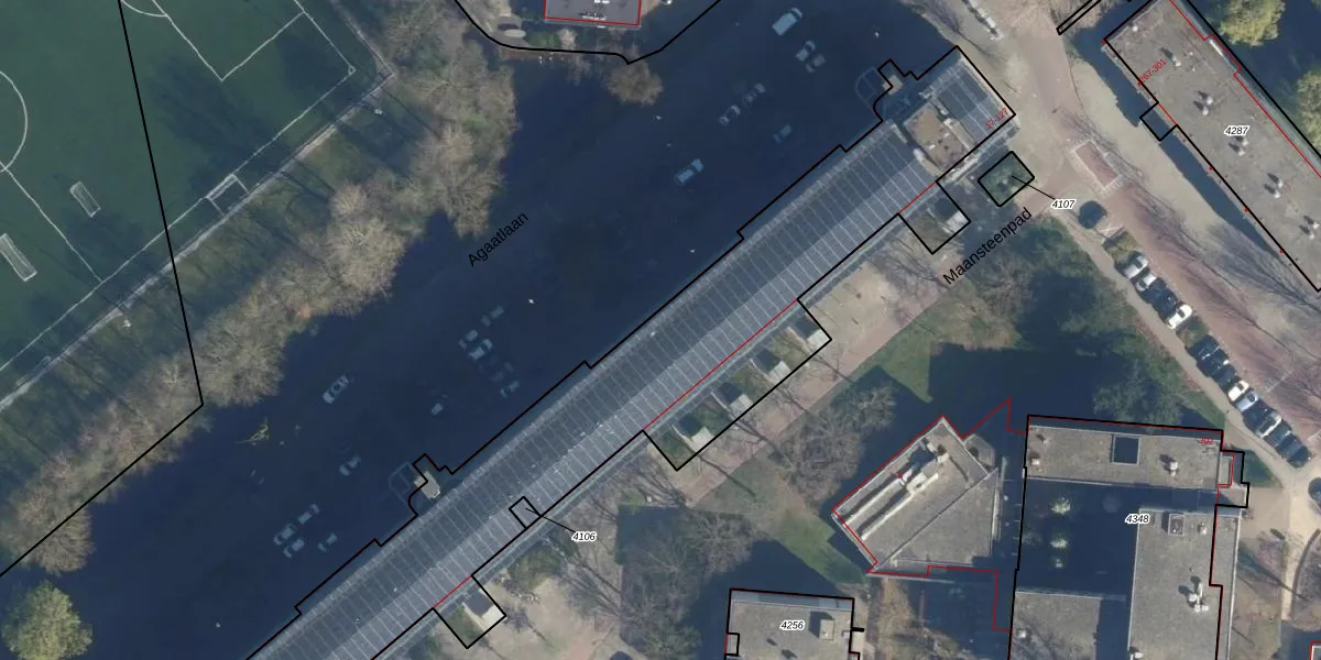 Het perceel waarop Agaatlaan 13 staat heeft een oppervlakte van 4615 m². Dit is een zeer groot perceel. De perceeloppervlakte wordt geregistreerd door het Kadaster. Gedetailleerde informatie over de maten van dit perceel kunt u vinden in het rapport Kadastrale kaart met maatvoering van Agaatlaan 13.