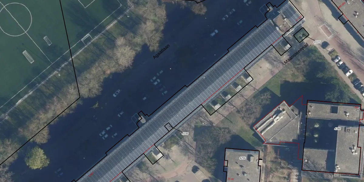 Het perceel waarop Agaatlaan 15 staat heeft een oppervlakte van 4615 m². Dit is een zeer groot perceel. De perceeloppervlakte wordt geregistreerd door het Kadaster. Gedetailleerde informatie over de maten van dit perceel kunt u vinden in het rapport Kadastrale kaart met maatvoering van Agaatlaan 15.