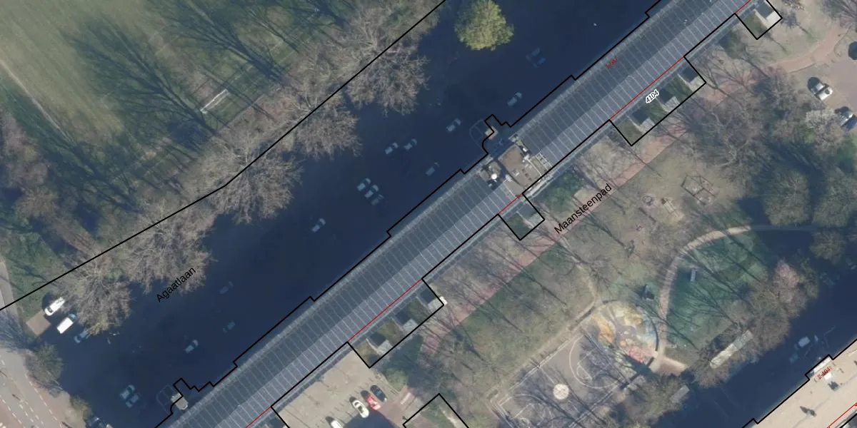 Het perceel waarop Agaatlaan 239 staat heeft een oppervlakte van 4615 m². Dit is een zeer groot perceel. De perceeloppervlakte wordt geregistreerd door het Kadaster. Gedetailleerde informatie over de maten van dit perceel kunt u vinden in het rapport Kadastrale kaart met maatvoering van Agaatlaan 239.