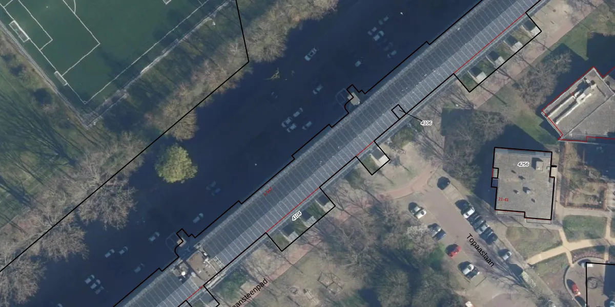 Het perceel waarop Agaatlaan 25-A staat heeft een oppervlakte van 4615 m². Dit is een zeer groot perceel. De perceeloppervlakte wordt geregistreerd door het Kadaster. Gedetailleerde informatie over de maten van dit perceel kunt u vinden in het rapport Kadastrale kaart met maatvoering van Agaatlaan 25-A.