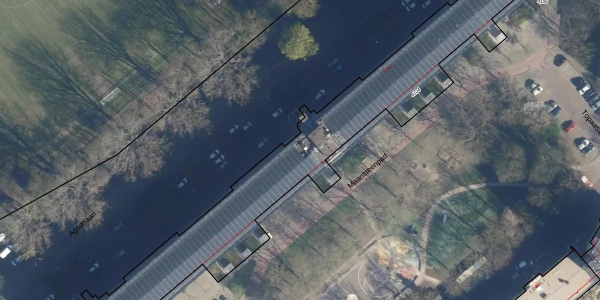 Het perceel waarop Agaatlaan 307 staat heeft een oppervlakte van 4615 m². Dit is een zeer groot perceel. De perceeloppervlakte wordt geregistreerd door het Kadaster. Gedetailleerde informatie over de maten van dit perceel kunt u vinden in het rapport Kadastrale kaart met maatvoering van Agaatlaan 307.