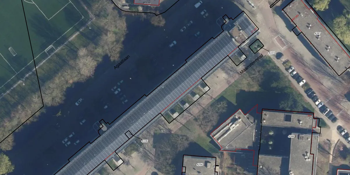 Het perceel waarop Agaatlaan 347 staat heeft een oppervlakte van 4615 m². Dit is een zeer groot perceel. De perceeloppervlakte wordt geregistreerd door het Kadaster. Gedetailleerde informatie over de maten van dit perceel kunt u vinden in het rapport Kadastrale kaart met maatvoering van Agaatlaan 347.