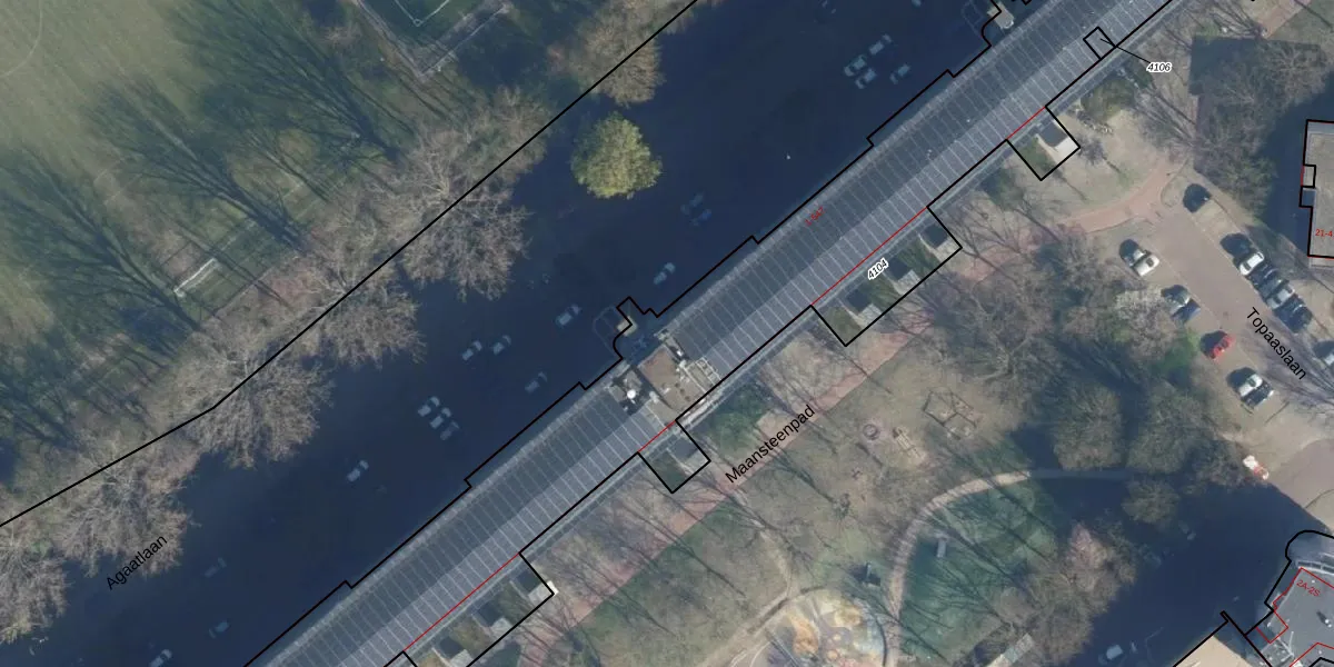 Het perceel waarop Agaatlaan 35 staat heeft een oppervlakte van 4615 m². Dit is een zeer groot perceel. De perceeloppervlakte wordt geregistreerd door het Kadaster. Gedetailleerde informatie over de maten van dit perceel kunt u vinden in het rapport Kadastrale kaart met maatvoering van Agaatlaan 35.