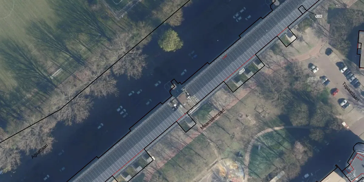 Het perceel waarop Agaatlaan 35-A staat heeft een oppervlakte van 4615 m². Dit is een zeer groot perceel. De perceeloppervlakte wordt geregistreerd door het Kadaster. Gedetailleerde informatie over de maten van dit perceel kunt u vinden in het rapport Kadastrale kaart met maatvoering van Agaatlaan 35-A.