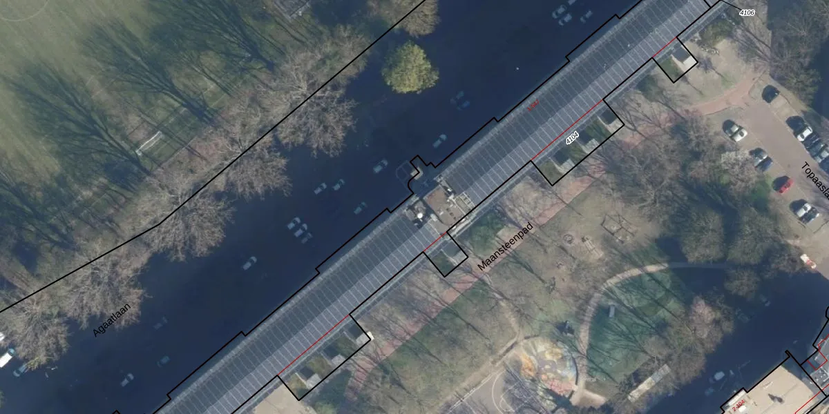 Het perceel waarop Agaatlaan 37-A staat heeft een oppervlakte van 4615 m². Dit is een zeer groot perceel. De perceeloppervlakte wordt geregistreerd door het Kadaster. Gedetailleerde informatie over de maten van dit perceel kunt u vinden in het rapport Kadastrale kaart met maatvoering van Agaatlaan 37-A.