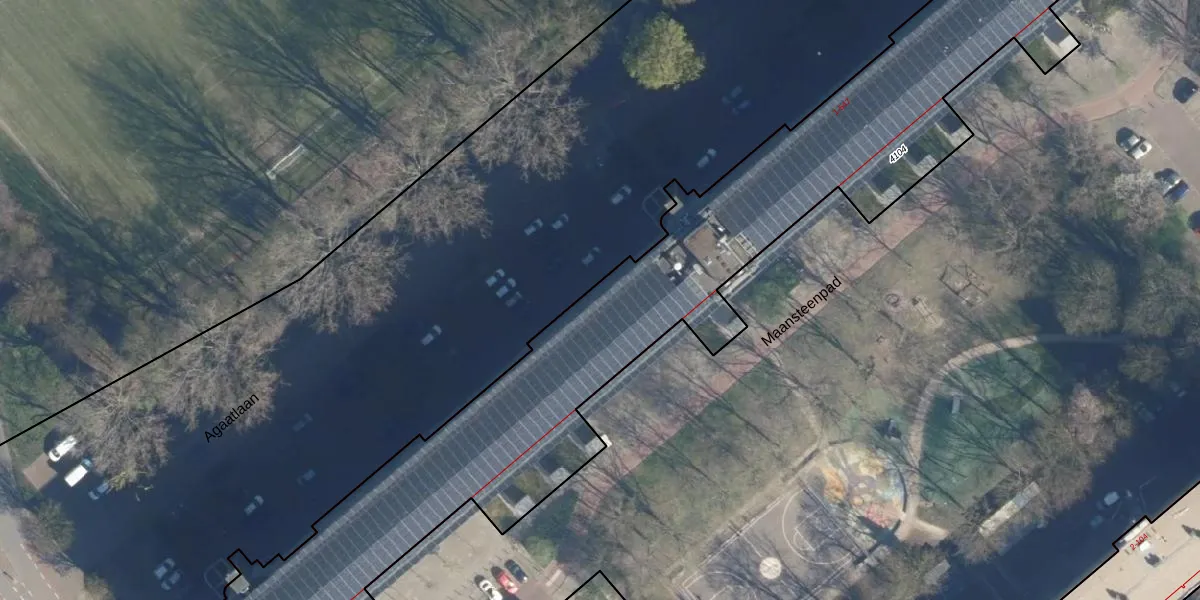 Het perceel waarop Agaatlaan 39 staat heeft een oppervlakte van 4615 m². Dit is een zeer groot perceel. De perceeloppervlakte wordt geregistreerd door het Kadaster. Gedetailleerde informatie over de maten van dit perceel kunt u vinden in het rapport Kadastrale kaart met maatvoering van Agaatlaan 39.