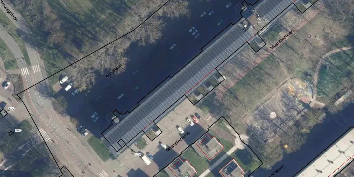 Het perceel waarop Agaatlaan 393 staat heeft een oppervlakte van 4615 m². Dit is een zeer groot perceel. De perceeloppervlakte wordt geregistreerd door het Kadaster. Gedetailleerde informatie over de maten van dit perceel kunt u vinden in het rapport Kadastrale kaart met maatvoering van Agaatlaan 393.